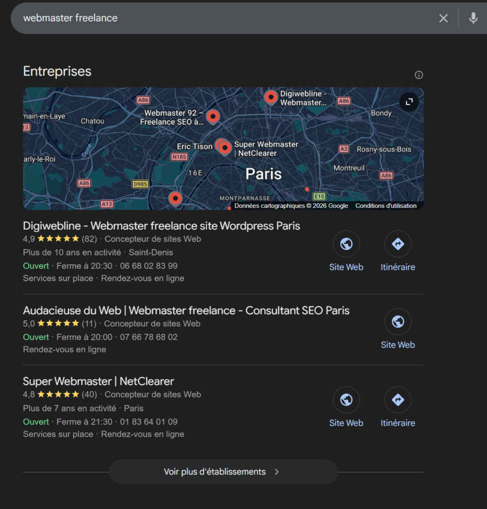 Le pack Local et le SEO se renforcent mutuellement. Un site bien référencé renforce également votre crédibilité GBP aux yeux de Google.